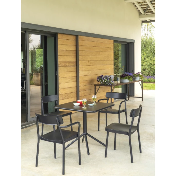 Mit dem schlichen Stuhl-Set GRACE von emu setzen Sie überall geschmackvolle Akzente. Das Set besteht aus vier minimalistischen Stühlen und wurde von dem Designer Samuel Wilkinson für emu entworfen. Die Sitzmöbel sind komplett aus Aluminium gefertigt. Sie zeichnen sich dabei durch den zeitlosen Vintage-Stil aus und lassen Retro-Feeling aufkommen. Die Möbel bieten einen angenehmen Sitzkomfort und können vielseitig verwendet werden. Die Stühle sind mit vier praktischen Beinen ausgestattet. Dadurch bieten sie einen sicheren und stabilen Stand. Wir bieten Ihnen die innovativen Sitzmöbel aus der Serie GRACE in verschiedenen Farbvarianten an. Sie können hierzu auch passende Armlehnstühle und Barhocker aus dieser Serie in unserem AMBIENDO Shop erwerben. Machen Sie es sich mit dem Stuhl 4er Set GRACE von emu im Indoor- oder Outdoorbereich gemütlich!