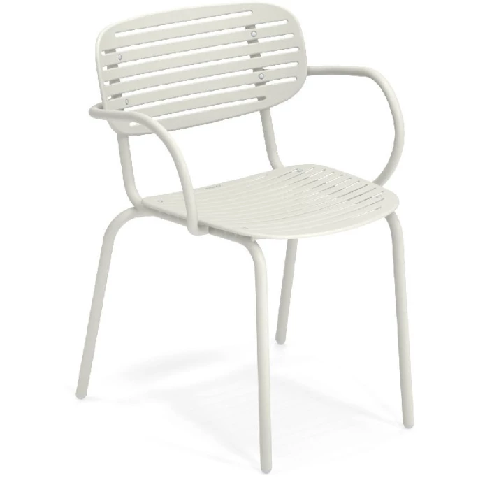 Mit dem schlichten Armlehnstuhl-Set MOM von emu setzen Sie überall dekorative Akzente. Das geschmackvolle Set besteht aus vier Stühlen mit praktischen Armlehnen und wurde von dem Designer Florent Coirier, der sich von den traditionellen, japanischen Suiban Tabletts inspirieren ließ, für emu entworfen. Das Stuhlgestell besteht komplett aus Stahlrohren Fe360, während die Sitzfläche und die Rückenlehne, die sich durch ein besonderes Design auszeichnen, aus tiefgezogenem verzinktem Stahlblech bestehen. Die Beschichtung ist aus Emu-Coat (Kataphorese + Lackierung) gefertigt. Die Stühle bieten einen angenehmen Sitzkomfort und können vielseitig verwendet werden. Sie sind mit vier praktischen Beinen ausgestattet und haben dadurch einen sicheren sowie stabilen Stand. Wir bieten Ihnen die zeitlosen Sitzmöbel aus der Serie MOM in vielen unterschiedlichen Farbvarianten an. Sie können hierzu auch passende Stühle ohne Armlehnen aus dieser Serie in unserem AMBIENDO Shop erwerben. Machen Sie es sich mit dem Armlehnstuhl 4er Set MOM von emu gemütlich!