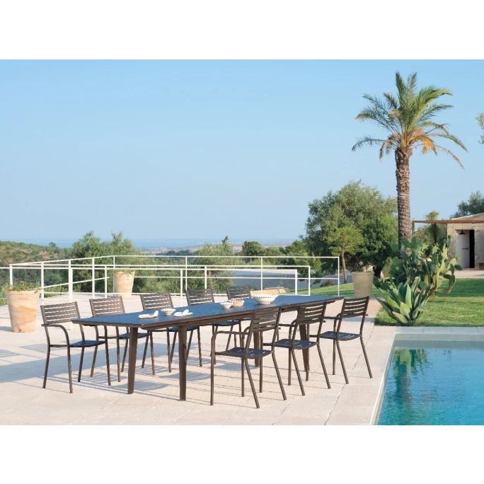 Mit dem zeitlosen Armlehnstuhl-Set SEGNO von emu setzen Sie überall geschmackvolle Akzente. Das klassische Set besteht aus vier schlichten Stühlen mit praktischen Armlehnen und wurde von dem Designer Aldo Ciabatti für emu entworfen. Die robusten Möbel sind komplett aus pulverbeschichtetem Stahl gefertigt. Sie zeichnen sich dabei durch die klare Formensprache mit einem horizontalen, markanten Linienmotiv aus. Die Möbel bieten einen angenehmen Sitzkomfort und können vielseitig verwendet werden. Die langlebigen Stühle sind mit vier praktischen Beinen ausgestattet. Dadurch bieten sie einen sicheren und stabilen Stand. Wir bieten Ihnen die charakteristischen Sitzmöbel aus der Serie SEGNO in verschiedenen Farbvarianten an. Sie können hierzu auch passende Stühle ohne Armlehnen und Barhocker aus dieser Serie in unserem AMBIENDO Shop erwerben. Machen Sie es sich mit dem Armlehnstuhl 4er Set SEGNO von emu im Outdoorbereich gemütlich!