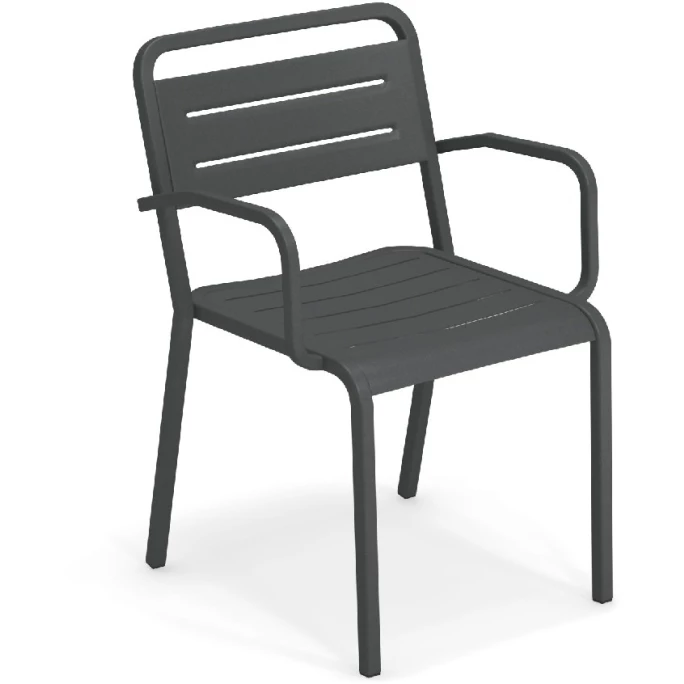 Mit dem Armlehnstuhl-Set URBAN von emu setzen Sie überall trendige Akzente. Das puristische Set besteht aus vier modernen Stühlen mit praktischen Armlehnen und wurde von dem Designer Samuel Wilkinson für emu entworfen. Die Sitzmöbel sind aus Aluminium gefertigt und zeichnen sich dabei durch Ihre natürliche Leichtigkeit aus. Sie bieten einen angenehmen Sitzkomfort und können vielseitig verwendet werden. Die langlebigen Stühle sind mit vier praktischen Beinen ausgestattet. Dadurch bieten sie einen sicheren und stabilen Stand. Wir bieten Ihnen die stylischen Sitzmöbel aus der Serie URBAN in verschiedenen Farbvarianten an. Sie können hierzu auch passende Stühle ohne Armlehnen und Barhocker aus dieser Serie in unserem AMBIENDO Shop erwerben. Machen Sie es sich mit dem originellen Armlehnstuhl 4er Set URBAN von emu gemütlich und sorgen Sie für eine ausgelassene Atmosphäre im Outdoorbereich!