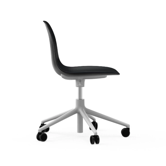 Formvollendetes Design und visiona?re Variationen: Das sind die Merkmale der Bestseller-Serie Form, die 2014 von Normann Copenhagen eingefu?hrt und seitdem fortlaufend erweitert wurde. Das neue Drehgestell aus Aluminium gibt dem Form Stuhl Swivel einen maskulinen und exklusiven Look und sorgt fu?r komfortable Bewegungsfreiheit. Der Stuhl eignet sich daher ausgezeichnet fu?r den Einsatz in zum Beispiel Besprechungsra?umen und Restaurants. Das Drehgestell umfasst die Stuhlschale mit vier schlanken Armen, die in der Mitte aufeinandertreffen und sich dann in fünf Stuhlbeine verzweigen. Das Drehgestell mit Ra?dern ist mit einer hochwertigen Gasfeder ausgestattet und fu?r Bu?roumgebungen eine a?sthetische und funktionelle Wahl. Das neue Gestell integriert sich harmonisch in die u?brigen Schalen-Designs der Form Serie. Normann Copenhagen und der Designer Simon Legald haben eine innovative und stilvolle Lo?sung entwickelt, bei der die Beine in vier gegossene Kunststoffelemente montiert werden, die sich perfekt an die Form der Sitzfla?che anpassen. Deshalb wirkt es beinahe so, als wu?rde das Gestell aus der Schale herauswachsen, und die Konstruktion ermo?glicht es, verschiedene Gestelltypen in den O?ffnungen zu montieren. Entdecken Sie die Kombinationsmöglichkeiten und bestellen Sie den hochwertigen Stuhl Form Swivel von Normann Copenhagen!