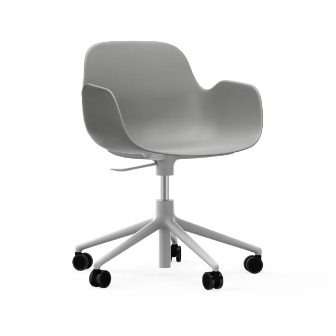 Formvollendetes Design und visiona?re Variationen: Das sind die Merkmale der Bestseller-Serie Form, die 2014 von Normann Copenhagen eingefu?hrt und seitdem fortlaufend erweitert wurde. Das neue Drehgestell aus Aluminium gibt dem Form Stuhl Swivel einen maskulinen und exklusiven Look und sorgt fu?r komfortable Bewegungsfreiheit. Der Stuhl eignet sich daher ausgezeichnet fu?r den Einsatz in zum Beispiel Besprechungsra?umen und Restaurants. Das Drehgestell umfasst die Stuhlschale mit vier schlanken Armen, die in der Mitte aufeinandertreffen und sich dann in fünf Stuhlbeine verzweigen. Das Drehgestell mit Ra?dern ist mit einer hochwertigen Gasfeder ausgestattet und fu?r Bu?roumgebungen eine a?sthetische und funktionelle Wahl. Das neue Gestell integriert sich harmonisch in die u?brigen Schalen-Designs der Form Serie. Normann Copenhagen und der Designer Simon Legald haben eine innovative und stilvolle Lo?sung entwickelt, bei der die Beine in vier gegossene Kunststoffelemente montiert werden, die sich perfekt an die Form der Sitzfla?che anpassen. Deshalb wirkt es beinahe so, als wu?rde das Gestell aus der Schale herauswachsen, und die Konstruktion ermo?glicht es, verschiedene Gestelltypen in den O?ffnungen zu montieren. Entdecken Sie die Kombinationsmöglichkeiten und bestellen Sie den hochwertigen Stuhl Form Swivel von Normann Copenhagen!