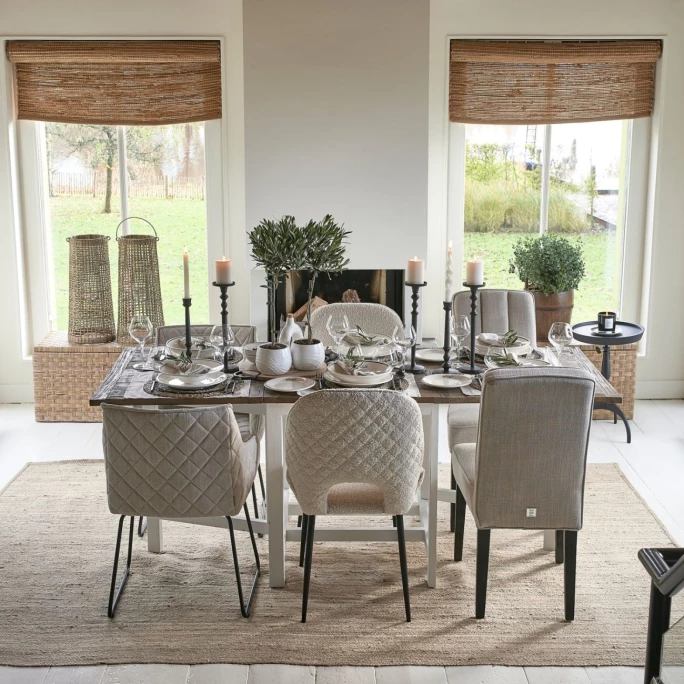 Sie mögen industrielles Design mit rustikalem Charme? Dann ist der Mr. Beekmann Esszimmerstuhl von Rivièra Maison genau der Richtige für Sie! Das dezent gestaltete Eisengestell verleiht dem schicken Stuhl einen industriellen Touch, während der schicke Bouclé-Bezug für einen rustikalen Look sorgt. Die besondere Formgebung und die gesteppten Außenseiten runden das optische Gesamtbild von Mr. Beekman dabei perfekt ab. Egal ob im Esszimmer, in der Küche oder als zusätzliche Sitzgelegenheit: Der Rivièra Maison Esszimmerstuhl sieht einfach überall gut aus und sorgt durch seine leicht konkave Sitzfläche für einen bequemen Sitzkomfort. Kombinieren Sie doch einfach die verschiedenen Stoffe und Farben der Mr. Beekmann Esszimmerstühle miteinander und kreieren so im Handumdrehen ein stilvolles Ambiente in Ihrem Ess-, Küchen- oder Wohnbereich – Sie werden begeistert sein!