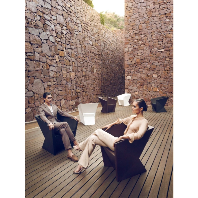 Der wunderschöne FAZ Stuhl mit Armlehne des Designerlabels Vondom begeistert mit einer einzigartig futuristischen Optik, die der extravaganten Formgebung zu verdanken ist. Designend wurde die Edelserie von dem spanischen Art Director Ramón Esteve, der mit der FAZ Kollektion eine modulare Serie von Gartenmöbeln und Pflanzengefäßen entworfen hat, die Harmonie, Gelassenheit und Zeitlosigkeit ausstrahlen. FAZ ist ein Design, welches gerne mit Häusern und Installationen kontextualisiert. Die Edelmarke Vondom schafft damit einen harmonischen Dialog zwischen Umwelt und Form, welche als Designkultur auch den einfachsten Raum in ein Ambiente voller Glamour, Einzigartigkeit und Außergewöhnlichkeit verwandelt. Das spanische Luxuslabel Vondom ist dabei weitaus mehr als nur eine Designermöbelmarke. Die Firmenphilosophie beruht auf der Schaffung exklusiver und zeitloser Stücke aus nachhaltigen, recycelten und recycelbaren Materialien. So werden Kunststoffabfälle aus dem Meer in recycelbare Produkte umgewandelt, welche selbstverständlich die hohen Qualitäts-, und Designstandards einhalten für die Vondom bekannt ist. Als Endergebnis entstehen nachhaltige Designermöbel die nie mehr weggeworfen werden, sondern ewig halten. Gefertigt wurde der wunderschöne FAZ Stuhl mit Armlehne aus hochwertigem Birkenholz und Polyethylen, ein vielseitiger Kunststoff mit vielen Vorteilen gegenüber anderen Materialien. Er hält extremsten Wetterbedingungen stand, Wasser kann ihm genauso wenig anhaben wie Sonnenlicht, er ist schlagfest und seine Farbbrillianz bleibt über die gesamte Nutzungsdauer erhalten. Aufgrund der niedrigen Dichte ist Polyethylen ein ökologisch nachhaltiges Material, das zu 100 % recycelbar ist. Erleben Sie schöne Stunden im Garten, auf dem Balkon oder als Highlight in jedem Wohnbereich mit dem In-& Outdoor Stuhl FAZ Stuhl mit Armlehne. Die pflegeleichte Designer-Sitzgelegenheit lässt sich besonders einfach reinigen, es genügt ihn mit einem feuchten Tuch und Wasser abzureiben. Fertig! Wählen Sie die für Sie passenden Stuhl in schlichter Eleganz, in verschiedenen Farben. Wir bieten Ihnen immer die perfekte Auswahl hier in unserem Ambiendo Shop. Bestellen Sie noch heute den wunderschönen FAZ Stuhl mit Armlehne, und lassen Sie sich von dem extravaganten Design begeistern, dass Ihren Wohnräumen das gewisse Etwas verleiht.